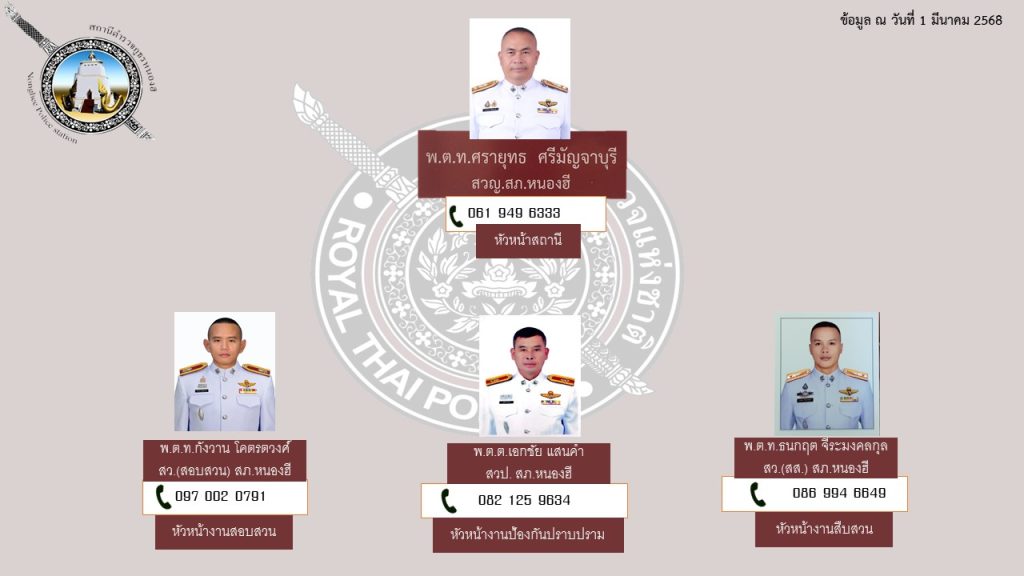 วันที่ 3 พฤศจิกายน 2567 เวลาประมาณ 14:26 น. โดยการอำนวยการของ พ.ต.ท.ศรายุทธ ศรีมัญจาบุรี สวญ.สภ.หนอง