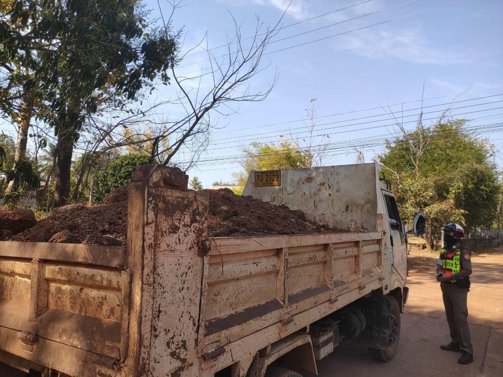 จับกุมรถบรรทุกดิน โดยกล่าวหาว่า ขับรถบรรทุกสัตว์ กรวด หิน ดิน เลน ทราย สิ่งปฏิกูล มูลฝอย หรือสิ่งอื่นใด ไม่จัดให้อยู่ในสภาพป้องกันมิให้มูลสัตว์ หรือสิ่งดังกล่าว ตกหล่น รั่วไหล ปลิว ฟุ้งกระจายลงบนถนนระหว่างที่ใช้รถนั้น นำส่งพนักงานงานสอบสวนดำเนินการสอบสวน และส่งหน่วยงานรับผิดชอบ ปรับพินัยตามกฎหมาย