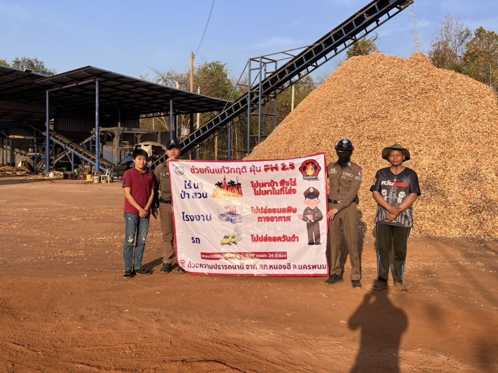 การปล่อยมลพิษทางอากาศ (PM2.5) ตามนโยบายรัฐบาลและตำรวจภูธรภาค 4 ให้กับโรงงาน ผู้ประกอบการในพื้นที่ สภ.หนองฮี อ.ปลาปาก จ.นครพนม